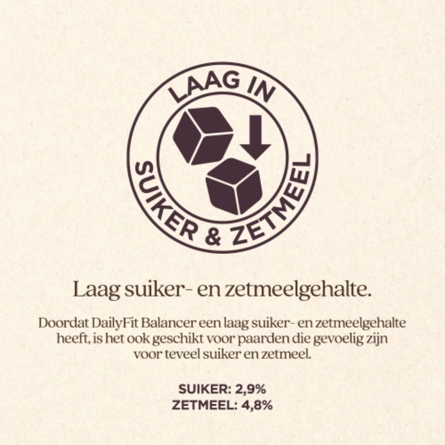 • Laag in suiker en zetmeel — geschikt voor sobere rassen of paarden die gevoelig zijn voor suikers.