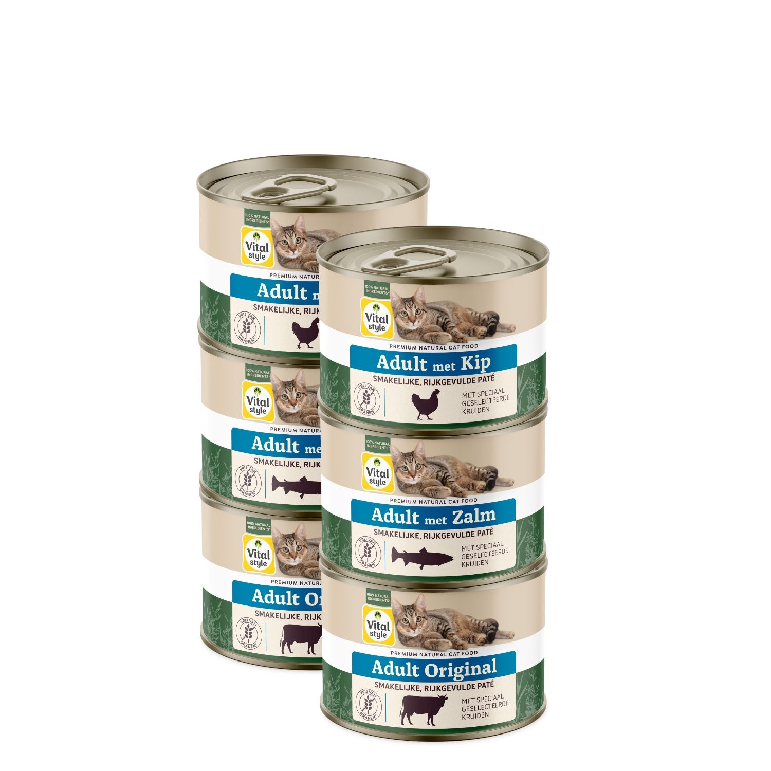 VITALstyle kattenvoeding is samengesteld uit verse ingrediënten. De natuurlijke grondstoffen worden na een kwaliteitscontrole snel verwerkt tot het eindproduct en ingeblikt. Het blikje wordt pas na het sluiten verhit, om de hoge kwaliteit van de voedingsstoffen, vitaminen en mineralen te behouden. VITALstyle kattenvoeding is 100% natuurlijk en bevat geen soja of granen, conserveringsmiddelen, kleurstoffen of kunstmatige aroma’s. Tevens wordt geen zout en suiker toegevoegd.