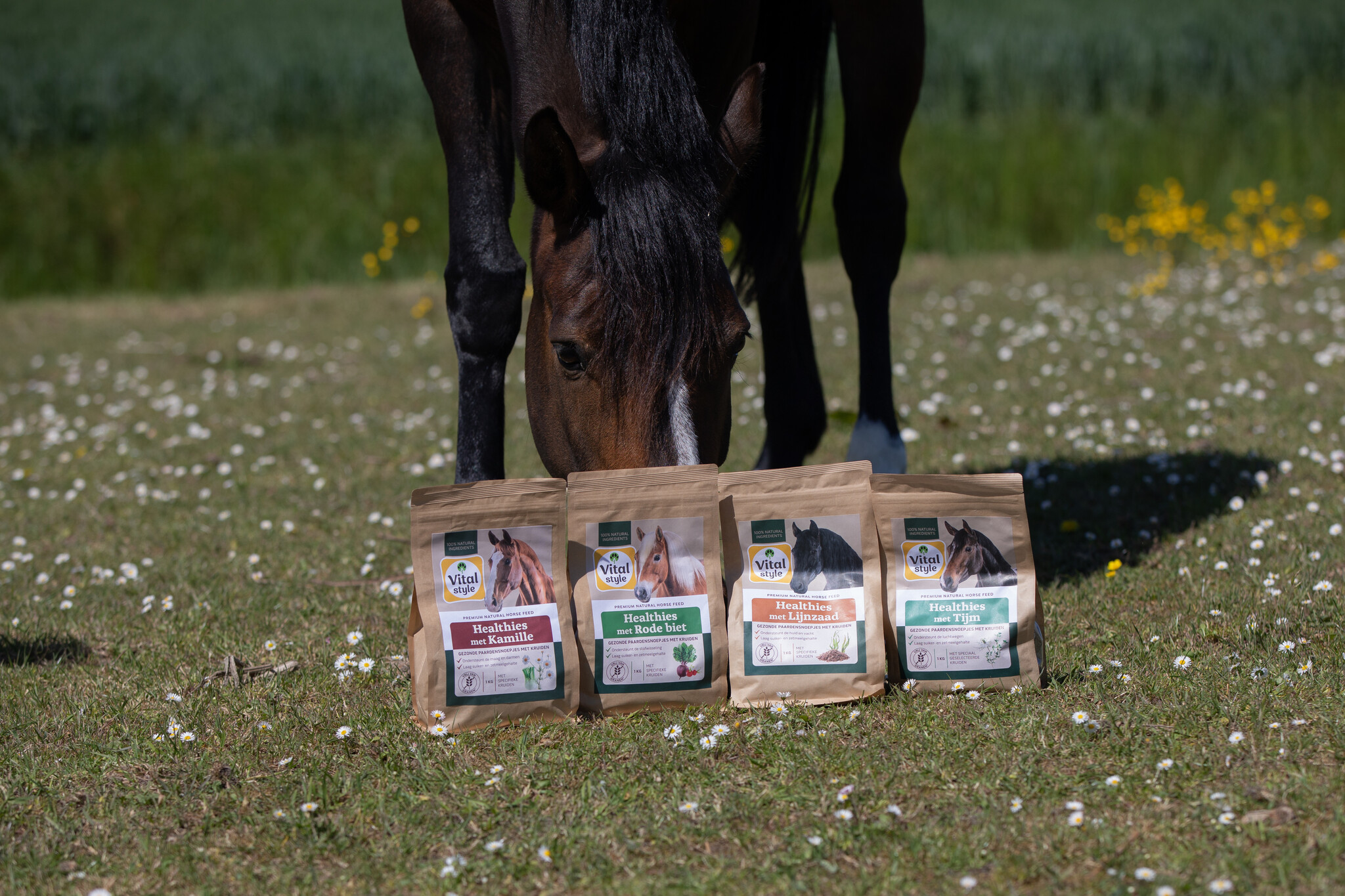 Geef je paard of pony enkele Healthies per dag als beloning naast het dagelijkse rantsoen. De maximale dagelijkse hoeveelheid is 50 gram per 100 kilogram lichaamsgewicht. Bewaar de snoepjes koel, droog en donker.