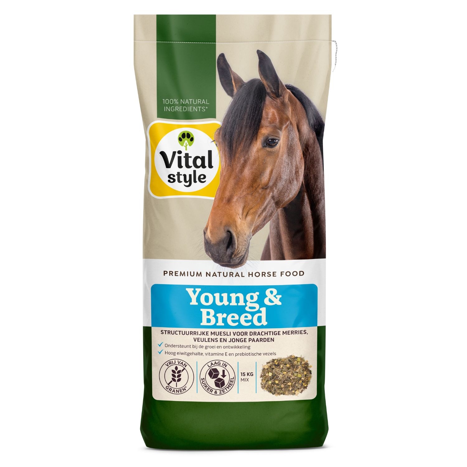 Young & Breed is een voedzame muesli ontwikkeld als dagelijkse aanvulling op het ruwvoer, speciaal samengesteld voor drachtige of zogende merries, veulens en jonge paarden tot ongeveer 3 jaar oud. Deze muesli voorziet in alle benodigde vitaminen en mineralen voor een gezonde ontwikkeling. Het bevat een hoog eiwit- en energiegehalte om de melkgift te ondersteunen, een gezond gewicht te behouden en een evenwichtige groei en ontwikkeling te bevorderen.
