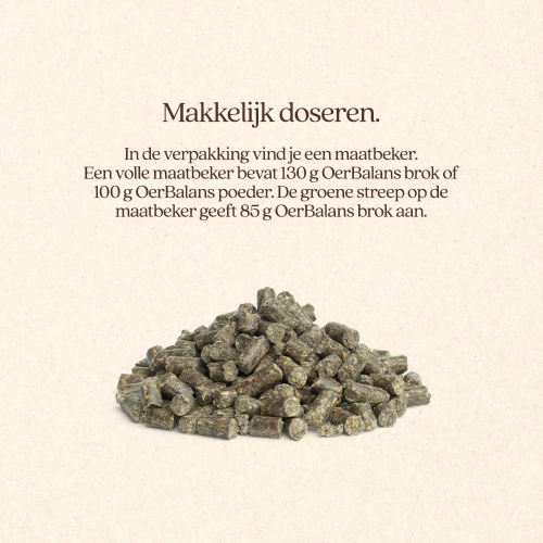 Oerbalans is een balancer: geconcentreerd in vitaminen/mineralen en kruiden, bedoeld naast ruwvoer en eventueel bestaand krachtvoer.