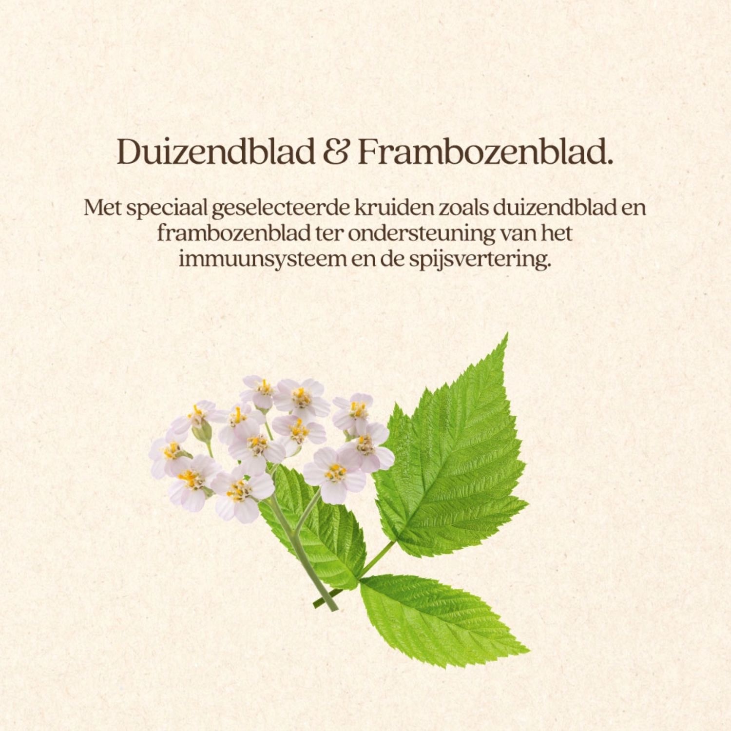 - Kruiden zoals brandnetel, paardenbloemwortel, duizendblad en frambozenblad: Ondersteunen de nierfunctie, leverreiniging en het immuunsysteem.