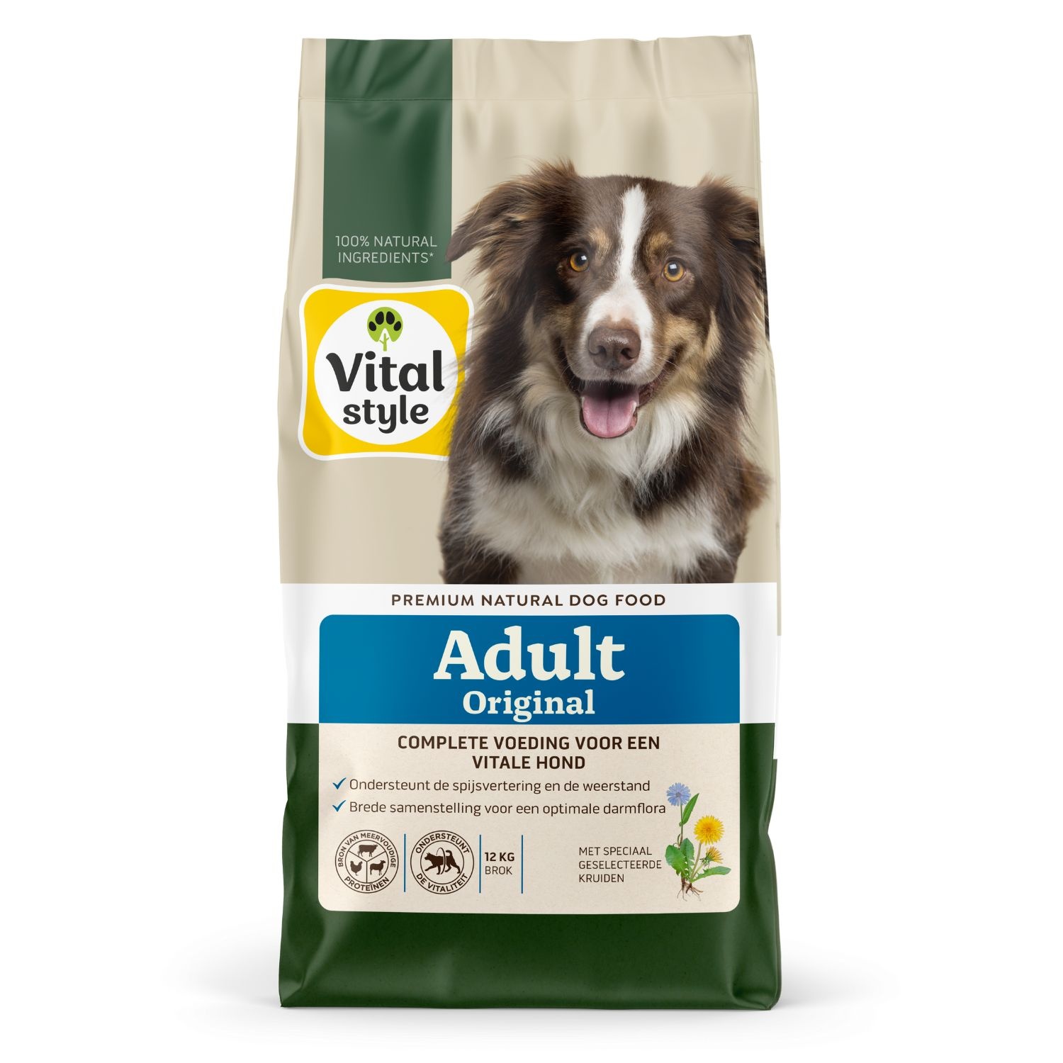 Aan VITALstyle Adult hondenbrokken is een kruidenreceptuur van meer dan 10 verschillende soorten toegevoegd. Elk kruid heeft zijn eigen, specifieke werking op het lichaam en de gezondheid. De combinatie van alle soorten samen maakt de werking nog effectiever. De mix is vanuit veel kennis en ervaring samengesteld.