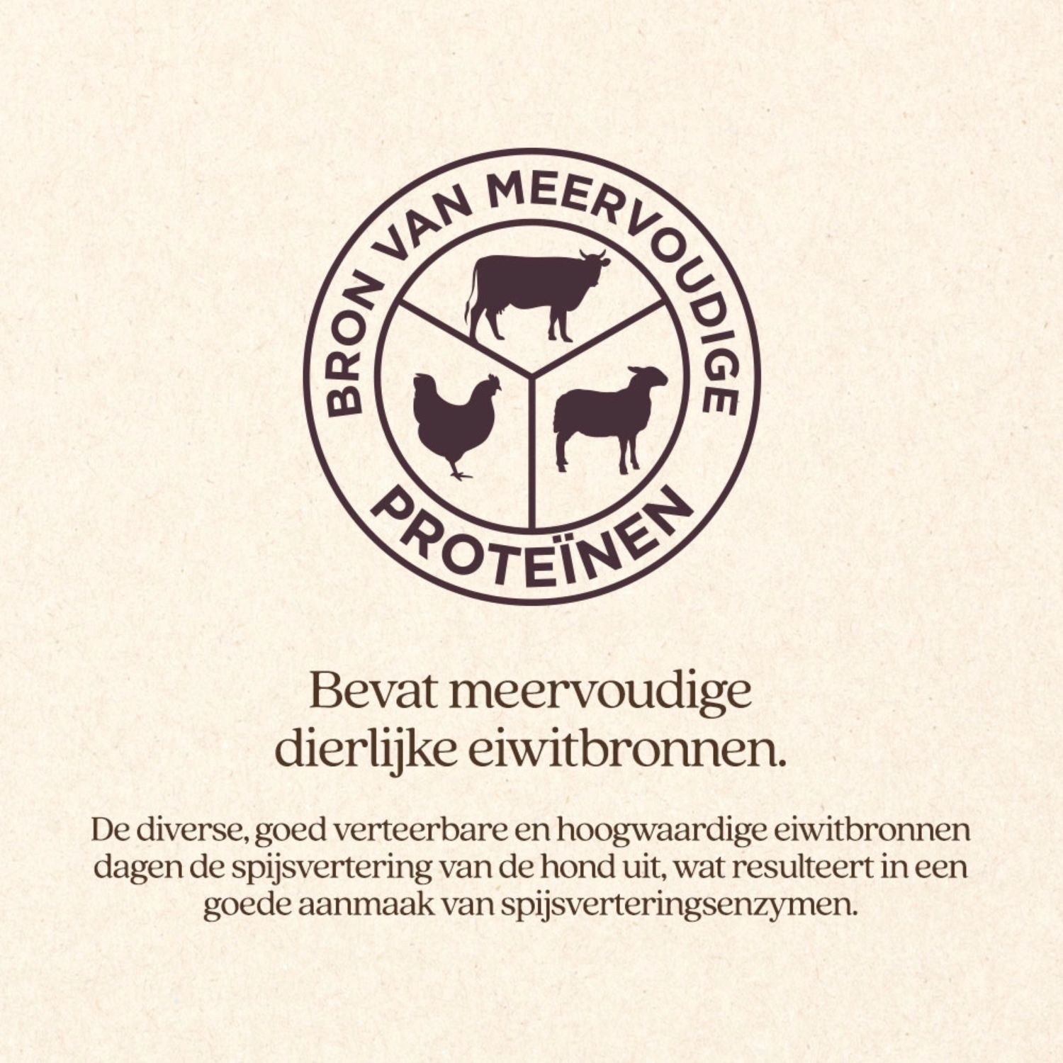 Mix van rund, varken, lam (gedroogd), tarwe, kip (gedroogd), maïs, cellulose, dierlijk eiwitextract (vetkanen), kruidenmix (brandnetel 1,6%, mariadistel 0,15%, cichoreiwortel 0,3%, Duizendblad 0,20%), gerst, tarwegries, rijstzemelen, kippenlever (gehydrolyseerd), gedroogde bietenpulp, geëxtraheerde sojabonen (getoast), gedroogde appel, vis (gedroogd), johannesbrood, dierlijk vet (gevogelte), zalmolie (min. 0,5%)