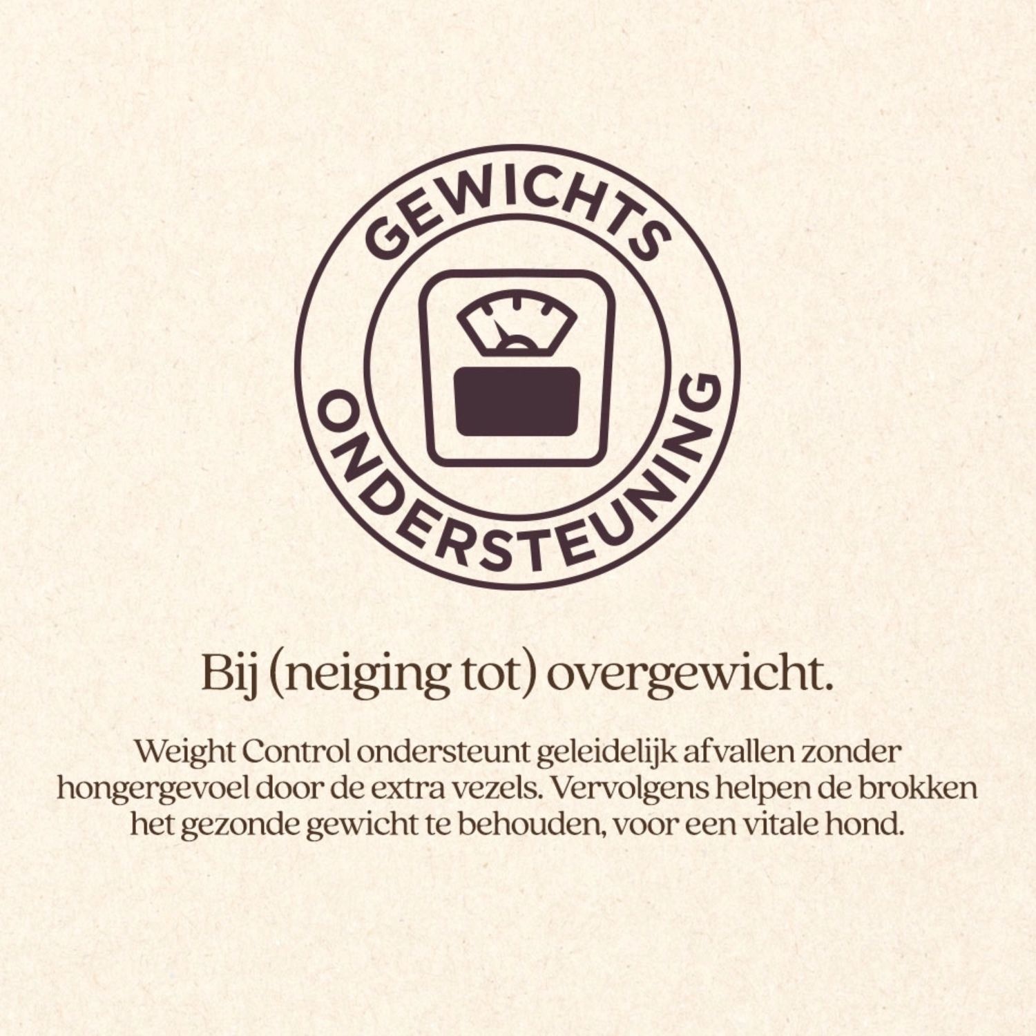 De speciale Weight Control (voorheen Overgewicht) hondenvoeding van VITALstyle (voorheen Ecostyle) stimuleert afvallen en geeft een verzadigd gevoel. Dit komt door de combinatie van een laag vetgehalte met een juist hoog gehalte aan ruwe celstof, waardoor deze voeding een laag energiegehalte heeft. De ruwe celstof, oftewel vezels, zijn voor een groot deel afkomstig uit de kruiden. Vezels zorgen voor een goede maag- en darmvulling, waardoor, ondanks dat de hond afvalt, hij geen hongergevoel heeft. Daarbij is er behoud van de spiermassa, dankzij de goed verteerbare eiwitten in de voeding. De hond verliest geleidelijk gewicht en wordt actiever.